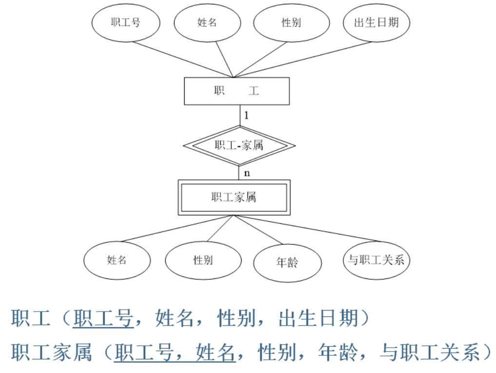 例1:职工是一个实体,职工号、姓名、年龄是职工的属性