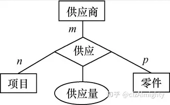 例如,有三个实体型:供应商、项目、零件,一个供应商可以供给多个项目多种零件,而每个项目可以使用多个供应商供应的零件,每种零件可由不同供应商供给,由此看出供应商、项目、零件三者之间是多对多的联系,如图(b)所示。