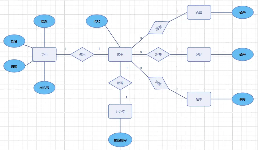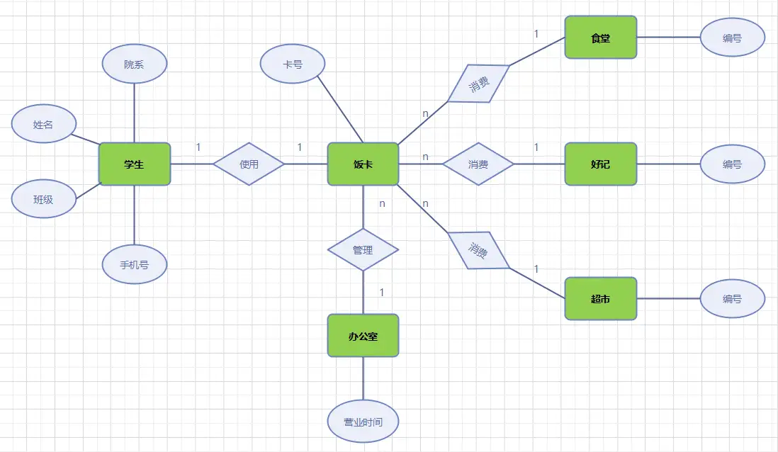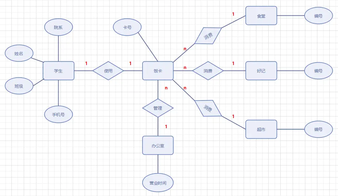 如果对于实体集 A 中的每一个实体,实体集 B 中有 n 个实体(n⩾0 )与之联系,反之,对于实体集 B 中的每一个实体,实体集 A 中也有 m 个实体(n⩾0 )与之联系,则称实体集 A 与实体集 B 具有多对多联系,记为 m:n。
