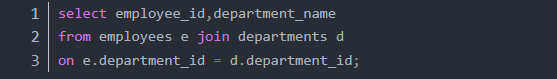 department_id字段与 departments 表建立关联关系。如果要查询一个员工所在部门的名称: