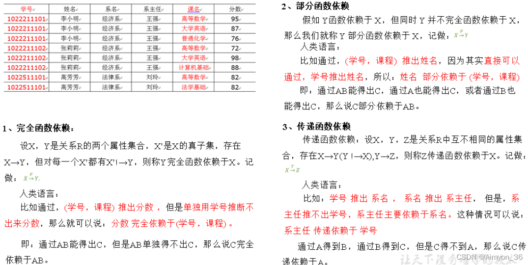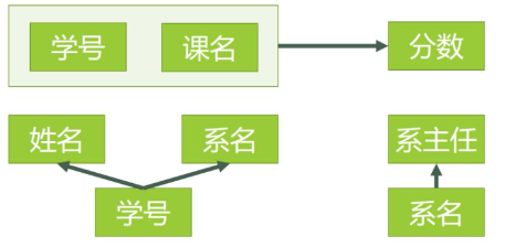 号也不能决定成绩,所以“(学号,课程号)→成绩”就是 完全依赖关系