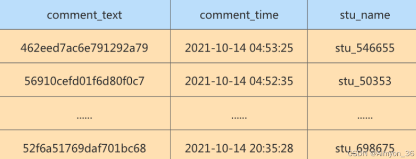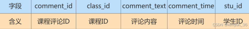 课程评论表 class_comment ,对应的字段名称及含义如下: