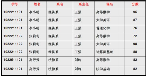 成绩表 (学号,课程号,成绩)关系中,(学号,课程号)可以决定成绩,但是学号不能决定成绩,课程