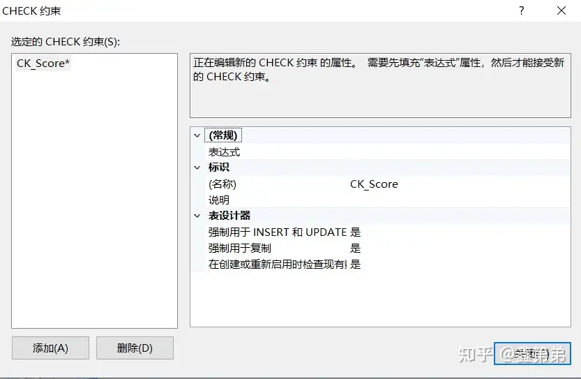 关键字 CHECK 表示定义 CHECK 约束,如果指定 NOT FOR REPLICATION 选项,则当复制代理执行插入、更新或删除操作时,将不会强制执行此约束。其后的 logical_expression 逻辑表达式,称为 CHECK 约束表达式,返回值为 TRUE 或 FALSE,该表达式只能为标量表达式。