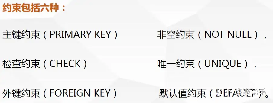 (1)静态列级约束:包括对数据类型的约束;对数据格式的约束;对取值范围或取值集合的约束;对空值的约束;其他约束