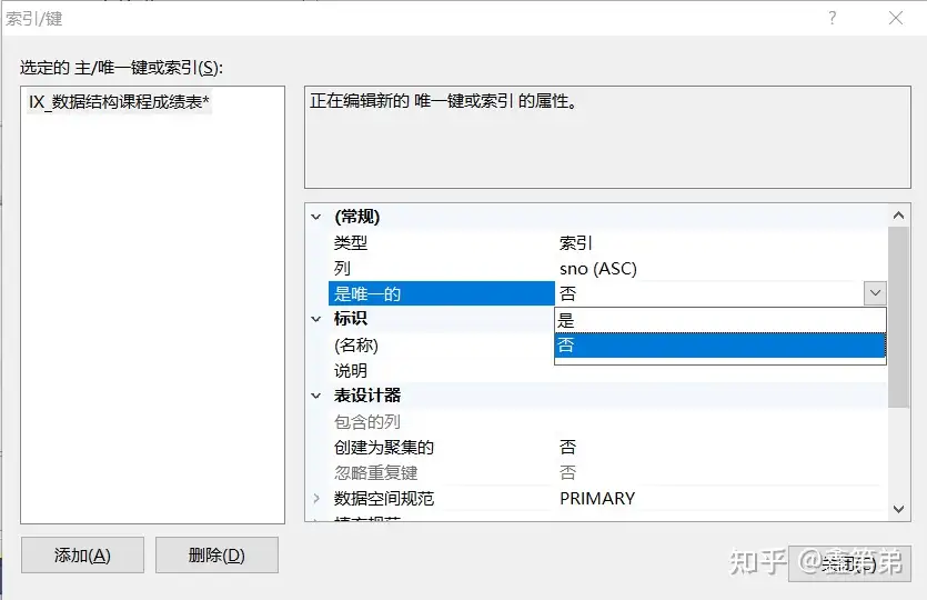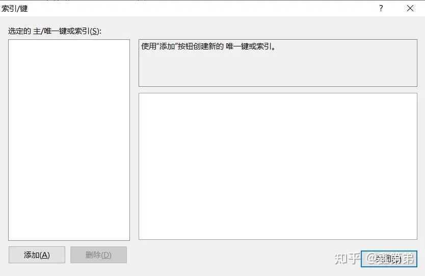 删除同理,在索引/键窗口中,找到对应的索引删除即可。