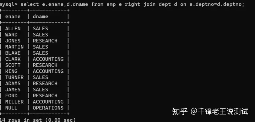 mysql> select e.ename,d.dname from emp e right join dept d on e.deptno=d.deptno;