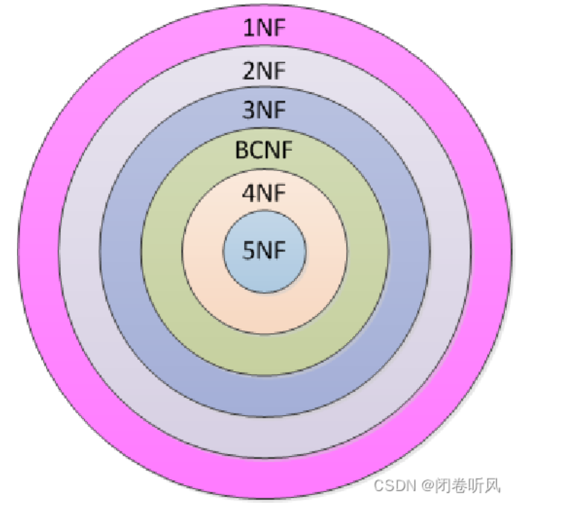 关系按此规范化程度从低到高可分为 5 级范式,分别称为 1NF、2NF、3NF ( BCNF)、 4NF、5NF。