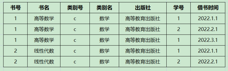 例如:学生信息( 学生ID,学生姓名,所在年级,性别,参加课程,课程ID,课程名称,课程描述,教师ID,教师姓名,教授课程)