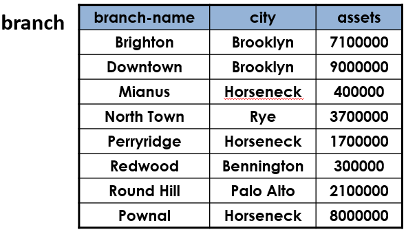 r1=πbranch-name(σcity=‘Brooklyn’(branch))