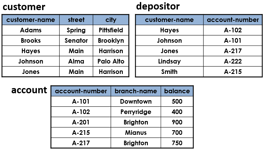 πcustomer-name,branch-name(depositor⋈account)