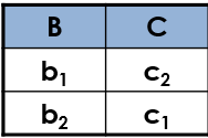 据此,对属性A中的每一个元祖(a1,a2,a3,a4)进行检视,看它们与S(B,C)的笛卡儿积是否全部包含在R中?