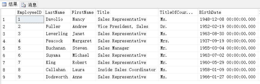5、查询出生日期在1960-1970年间的员工,按日期升序;