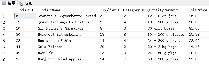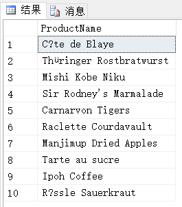 8、查询单价(UnitPrice)最高的10件产品的名称。