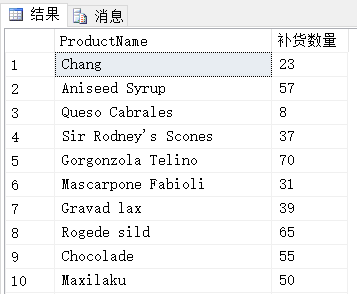 12、查询需要补货的产品名称和补货数量。(订购(UnitsOnOrder)>库存(UnitsInStock))
