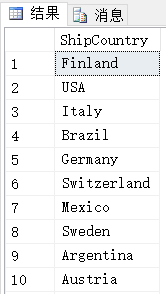 3、查询所有订单的物流国家(ShipCountry),要求结果中的国家不能重复。