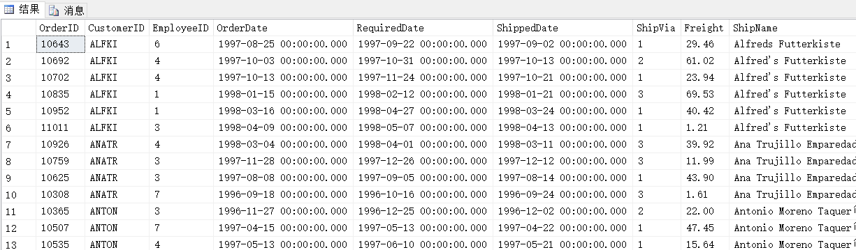 11、查询负责处理订单的员工和订单所属客户在同一个城市的订单的订单编号(OrderDate) 。