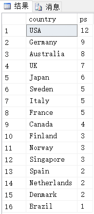 7、统计各个国家(country)供应商所供应的产品种数,降序排列。