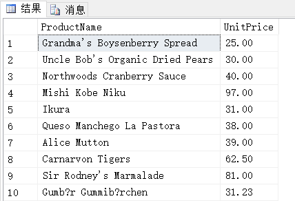 9、查询单价高于产品’Tofu’单价的产品名称(ProductName)和价格(UnitPrice);