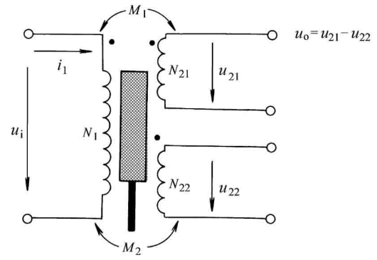 差动变压器式传感器是把被测位移量转换为一次线圈与二次线圈间的互感量M的变化的装置。当一次线圈接入激励电源之后,二次线圈就将产生感应电动势,当两者间的互感量变化时,感应电动势也相应变化。由于两个二次线圈采用差动接法,故称为差动变压器。目前应用最广泛的结构型式是螺线管式差动变压器。