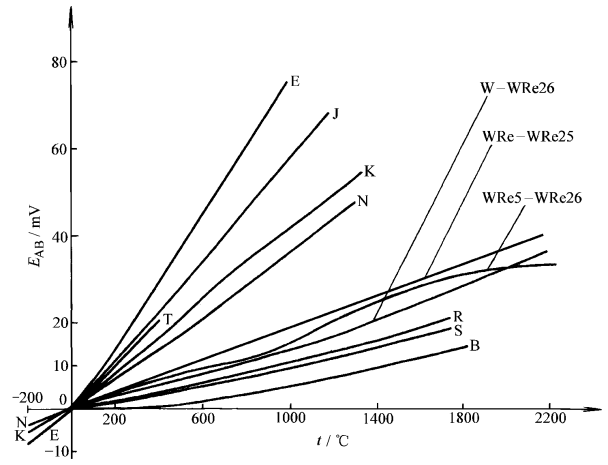 铂铑13-铂 | R(PR) | — | -50~1768 | 0.647 | 使用上限较高,精度高,性能稳定,复现性好;但热电动势较小,不能在金属和还原性气体中使用,在高温下使用特性会逐渐变坏,价昂;多用于精密测量 |