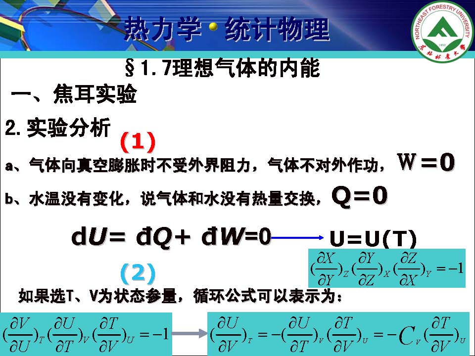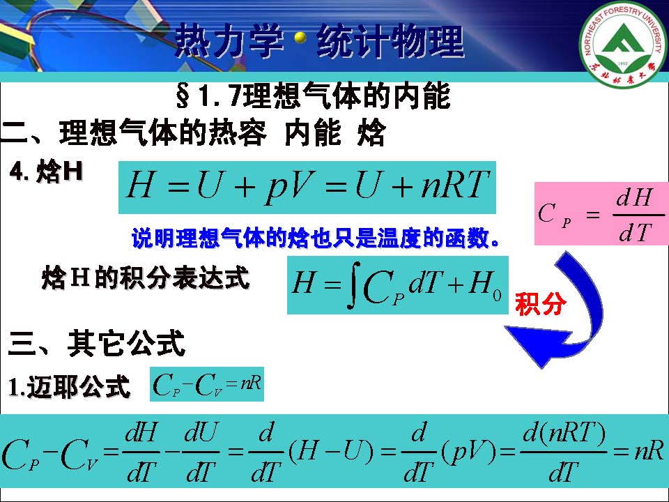 3.1 内能、焓、自由能和吉布斯函数的全微分