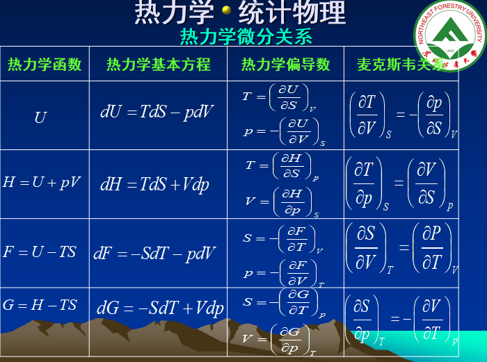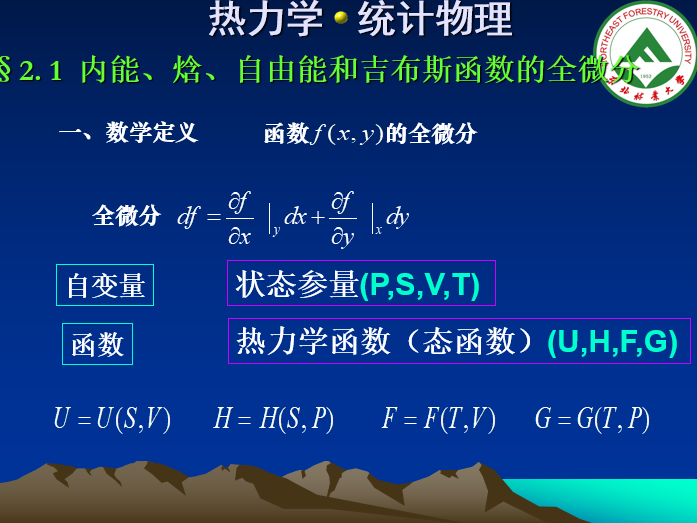 3.1 内能、焓、自由能和吉布斯函数的全微分