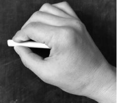 由于书写的板面是垂直于地面的,这决定了执粉笔的方法与拿毛笔、握钢笔的方法都不同。粉笔执笔时,大拇指、食指、中指三指内侧共同捏住粉笔一端,由于粉笔质脆,距离笔头不宜太远。粉笔应放在掌心内,与板面呈30度左右的夹角,书写时,以手腕运笔为主,手指也要灵活,起辅助作用。由于粉笔易磨损,所以书写时要不断地转动粉笔,保持写出来的线条粗细均匀。
