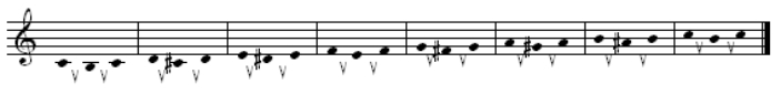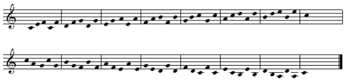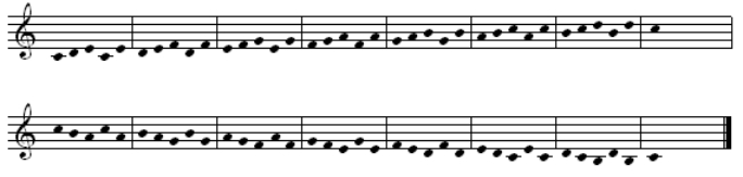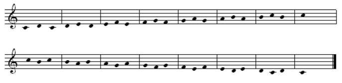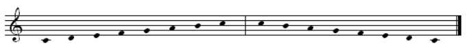 ⑵谱例13,简谱音高(1=C):12345671;17654321