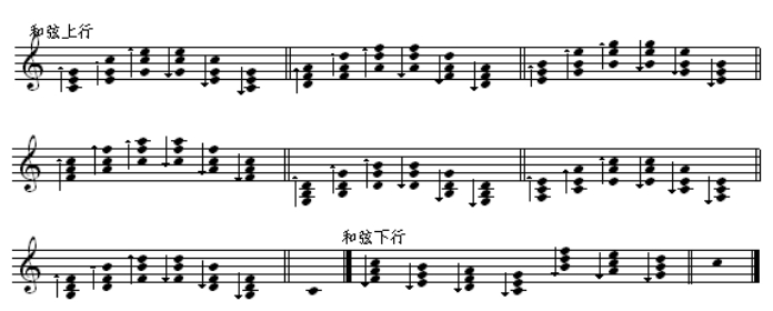 练习3,自然音阶Ⅰ-Ⅶ级和弦分解练习