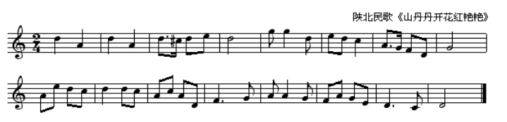 ⑴谱例35,提示:1=C,2/4拍子,D商民族五声调式。注意第3、4,7、8,8、9小节间的切分音的时值和强音处理。