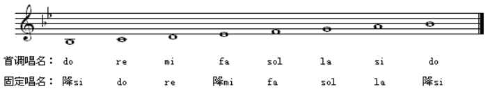 ⑶谱例30,一个降号的调,1=F,调高位置do音在第一间上。