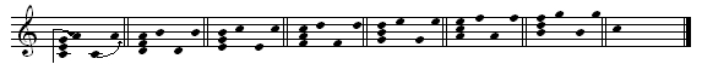 对调式的各级和弦进行分解的上下行构唱有利于更好地体验和训练三、四度音程,更为重要的是,和弦的构唱对调式调性感的建立能够起到至关重要的作用,需要予以足够的重视。