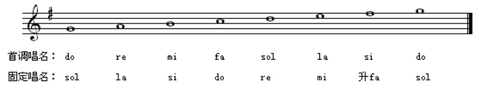 ⑵谱例29,一个升号的调,1=G,调高位置do音在第二线上。