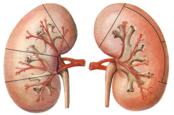 每支肾段动脉分布到一定区域的肾实质,称为肾段 renal segment。每个肾有五个肾段:上段、上前段、下前段、下段和后段。肾段对肾疾病的定位和部分切除有实用意义。