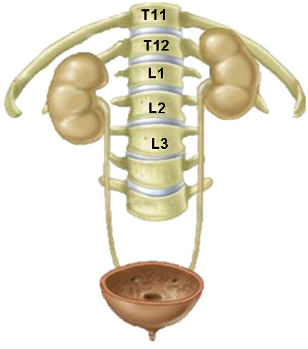 以第十二肋为标志:第12肋斜过左肾后面中部,右肾后面上部。