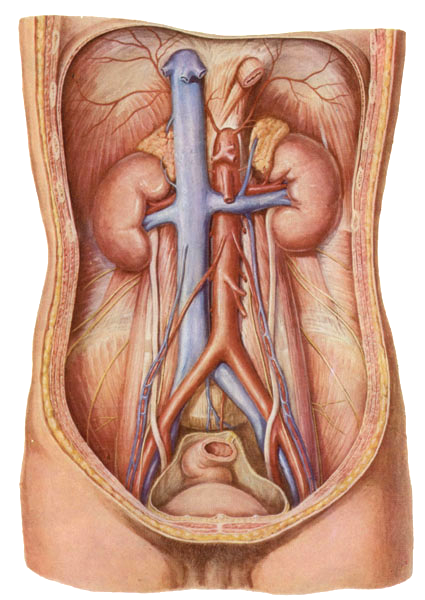 后面:上1/3与膈相邻。 下2/3邻腰大肌、腰方肌和腹横肌。