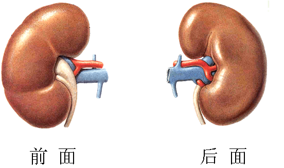 肾 kidney 是成对的实质性器官,位于腹后壁,形似蚕豆。肾分内、外侧两缘、前、后两面及上、下两端。