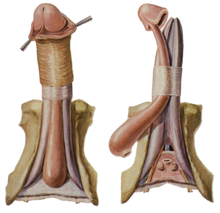 耻骨前弯:在耻骨联合前下方,凹面向下,阴茎头上提,此弯曲消失。