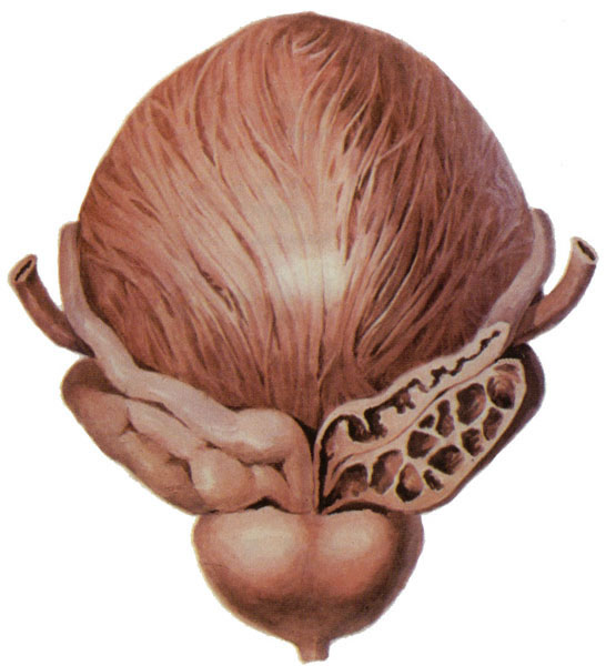 1.前列腺部:为尿道穿过前列腺的部分,管腔宽大,在后壁上有尿道嵴、精阜、前列腺小囊、射精管开口及前列腺排泄管的开口。