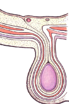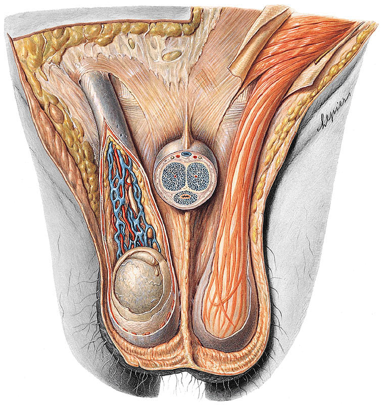 1.睾丸部:在睾丸后缘附睾内侧上行,至睾丸上端。
