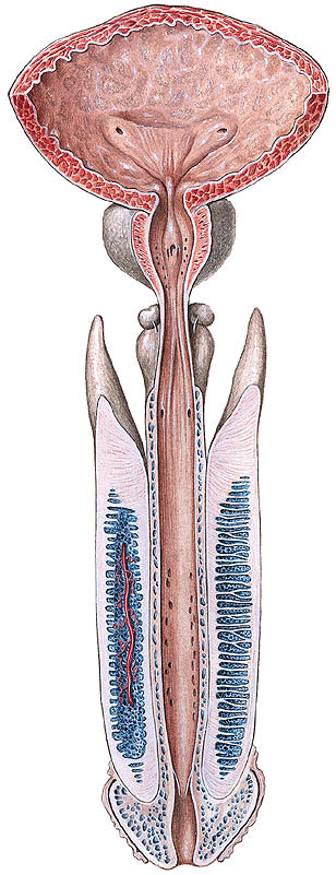 3.海绵体部:为尿道穿过尿道海棉体的部分,在尿道球内的尿道最宽,称为尿道球部,尿道球腺导管开口于此,在茎头内的尿道扩大成称尿道舟状窝。