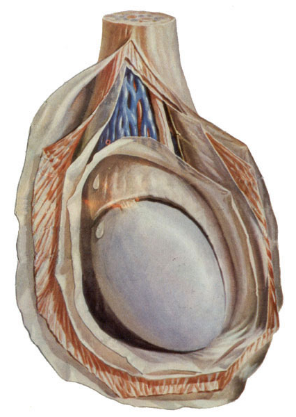 阴囊是位于阴茎后下方的皮肤囊袋,其结构是:皮肤、浅筋膜(肉膜)、精索外筋膜、提睾肌、精索内筋膜、睾丸鞘膜(脏、壁层间有鞘膜腔)。