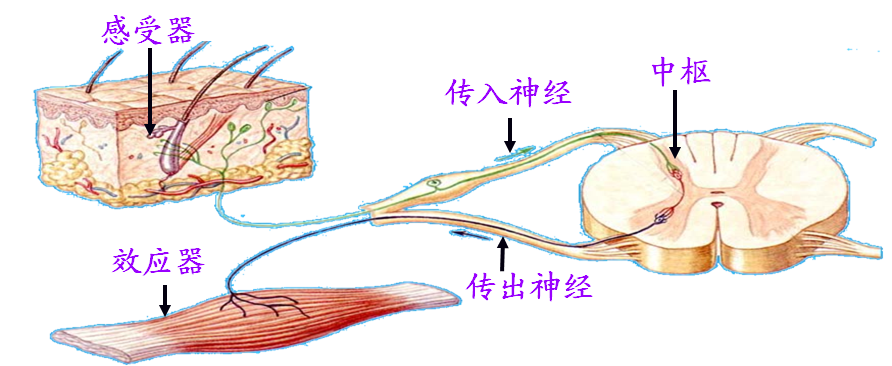 感受器 → 感觉神经元 → 中枢→ 运动神经元 → 效应器