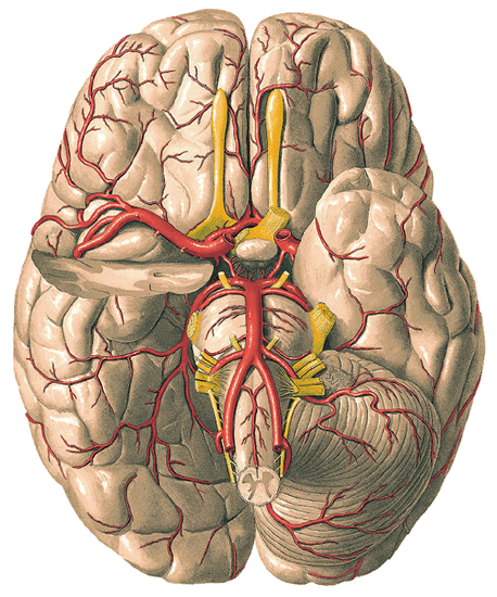 1.颈内动脉 internal carotid a.供应大脑半球前2/3及部分间脑