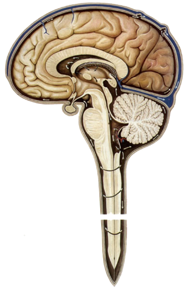 由两层合成;与颅盖骨连接疏松;在颅底部与颅骨结合紧密