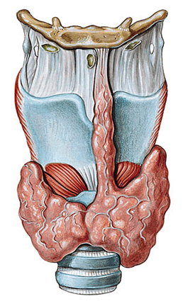 呈锥体形,贴于喉和气管上段侧面,上端达甲状软骨中部,下端达第5或第6气管软骨高度。