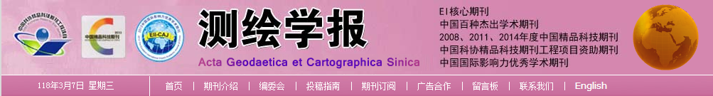 《测绘学报》创刊于1957年,月刊,是由中国科学技术协会主管、中国测绘地理信息学会主办、《测绘学报》编辑部编辑、测绘出版社出版的综合性学术刊物。《测绘学报》是美国《工程索引》(Ei)核心期刊,曾荣获中国精品科技期刊、百种中国杰出学术期刊、中国国际影响力优秀学术期刊、全国优秀测绘期刊等称号,连续多年入选中国科协精品科技期刊工程项目,并被国内外多个重要数据库收录,是我国测绘地理信息科学领域具有重要影响力的学术期刊。本刊为开放获取(open access, OA)期刊,已加入国际知名开放获取平台Directory of Open Access Journals(DOAJ)和Scholarly Exchange,以及中国科技期刊开放获取平台(COAJ)。