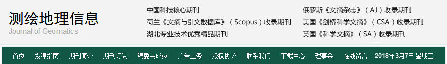 《测绘工程》是中国科学引文数据库(CSCD)收录期刊和中国科技核心期刊;中国学术期刊综合评价数据库来源期刊;中国学术期刊(光盘版)全文收录期刊。