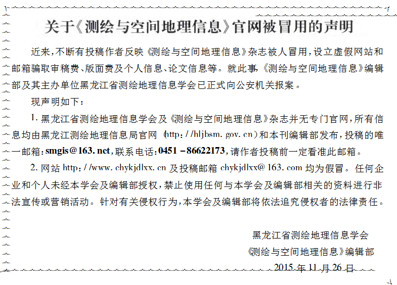 《测绘与空间地理信息》于1978年创刊,本刊是黑龙江测绘局主管、黑龙江省测绘学会主办。全国省级第一个测绘期刊,历经《黑龙江测绘》、《东北测绘》更名至今,现已成为印刷精美、内容丰富、读者面广、印刷量大、装帧精美、页码厚重、超越地域限定的全国优秀测绘期刊、中国测绘行业大刊!